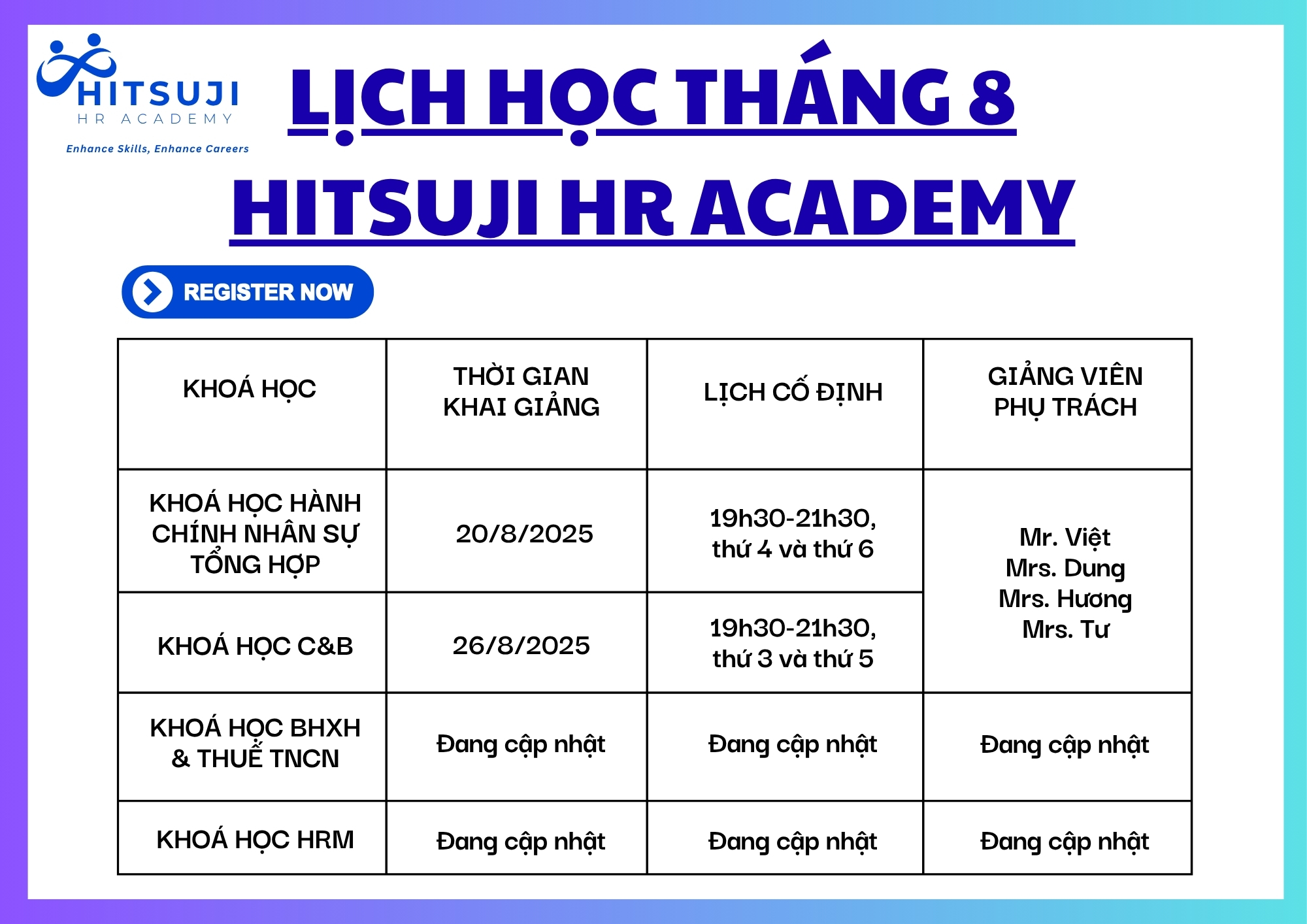 Khóa học tại HITSUJI HR ACADEMY được thiết kế giúp bạn hiểu rõ quy định – thực hành thành thạo – xử lý đúng mọi tình huống phát sinh trong thực tế.