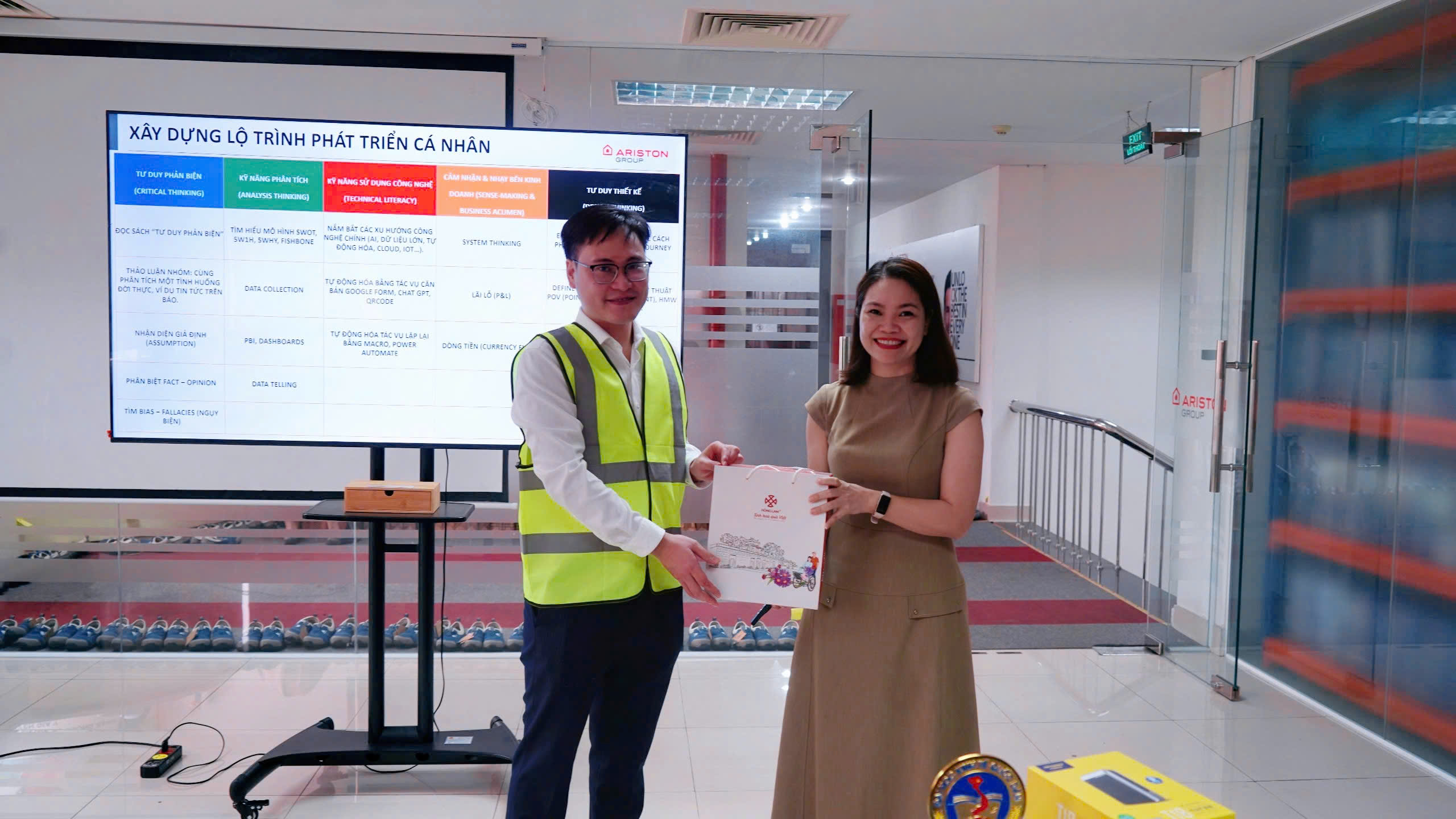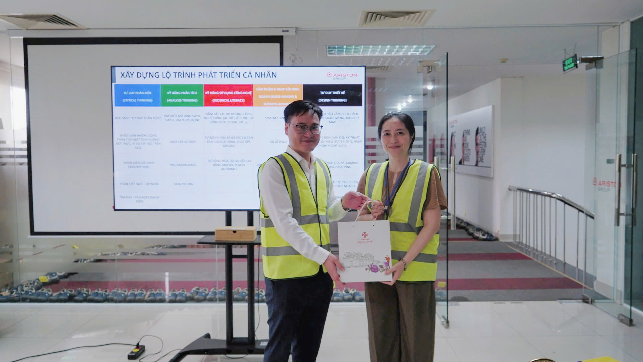 ✨ Chương trình được thiết kế bài bản với nhiều nội dung xuyên suốt: từ phần giới thiệu tổng quan về Ariston, tham quan dây chuyền sản xuất (factory tour), đến chia sẻ chuyên sâu về lộ trình nghề nghiệp trong lĩnh vực Nhân sự (HR Career Path & Requirements).