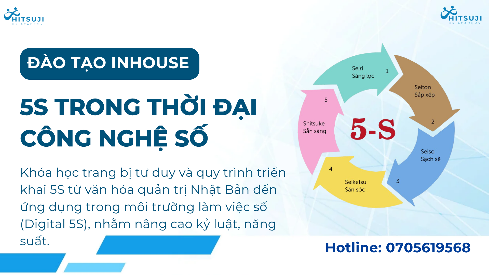 🎓 “5S TRONG THỜI ĐẠI CÔNG NGHỆ SỐ” - nơi bạn sẽ học cách áp dụng tinh thần 5S kiểu Nhật kết hợp cùng công cụ hiện đại và trí tuệ nhân tạo để tối ưu môi trường làm việc - từ bàn làm việc đến không gian số, được giảng dạy bởi các chuyên gia nhiều năm kinh nghiệm làm việc trong các Công ty Nhật Bản.