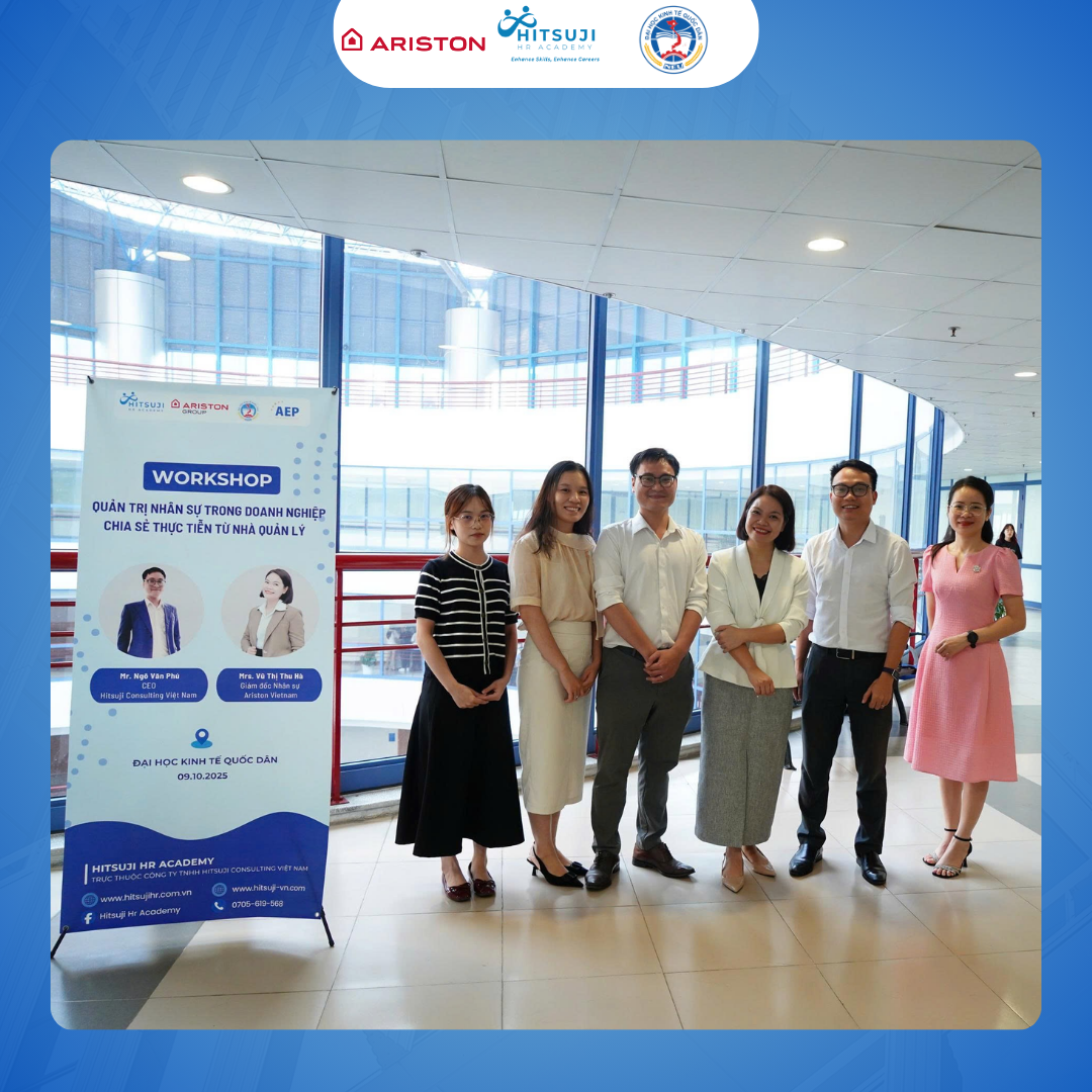 💬Chiều nay (09/10/2025), Hitsuji HR Academy phối hợp cùng Ariston Vietnam và Khoa Quản trị Nhân lực – Đại học Kinh tế Quốc dân (NEU) tổ chức buổi Workshop “Quản trị nhân sự trong doanh nghiệp – Chia sẻ thực tiễn từ nhà quản lý”, mang đến cho sinh viên cái nhìn đa chiều về nghề Nhân sự trong kỷ nguyên mới – nơi chiến lược con người và công nghệ song hành trong phát triển tổ chức.