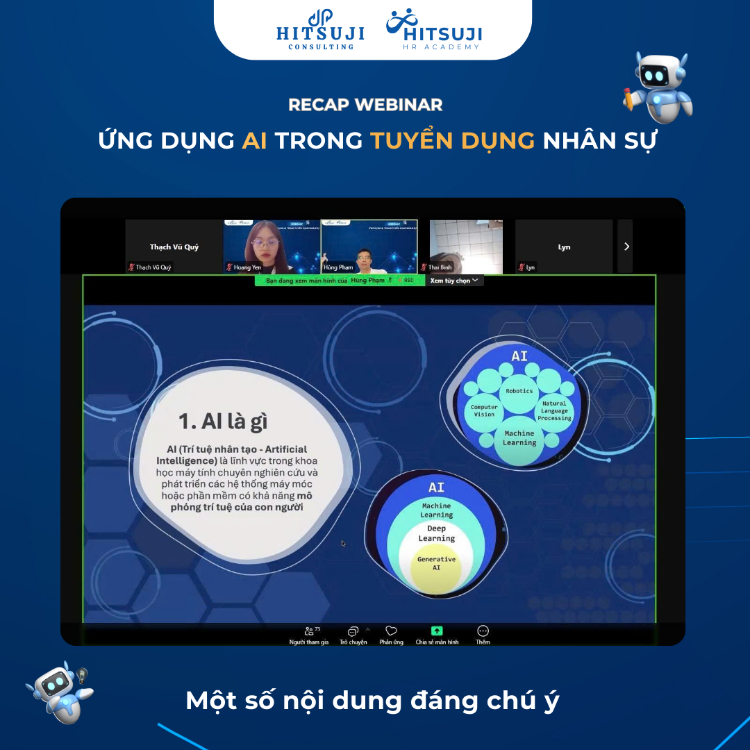 Ngày 24/09/2025, Hitsuji HR Academy đã tổ chức thành công Webinar “Ứng dụng AI trong Tuyển dụng Nhân sự” với sự tham gia của hơn 85 anh/chị HR và nhà quản lý trên khắp cả nước.