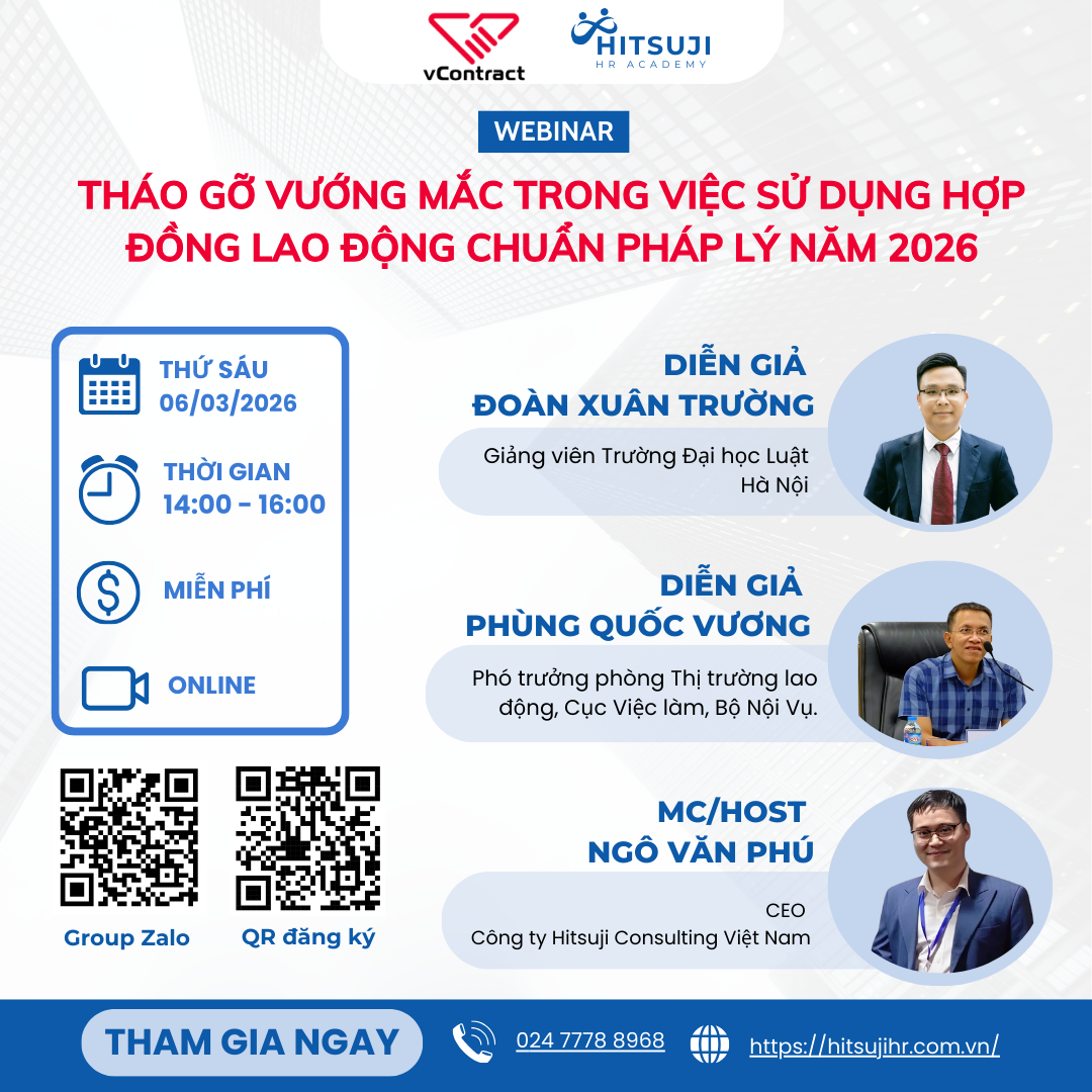Đây là webinar được tổ chức bởi Viettel phối hợp cùng các chuyên gia hàng đầu về Pháp lý và Quản trị nhân sự, là cơ hội để các nhà quản lý được đồng hành cùng các chuyên gia nhằm tìm ra giải pháp tối ưu cho các "nút thắt" về quy trình ký kết, lưu trữ dữ liệu và bảo mật thông tin… trong hợp đồng lao động theo tiêu chuẩn mới nhất năm 2026.